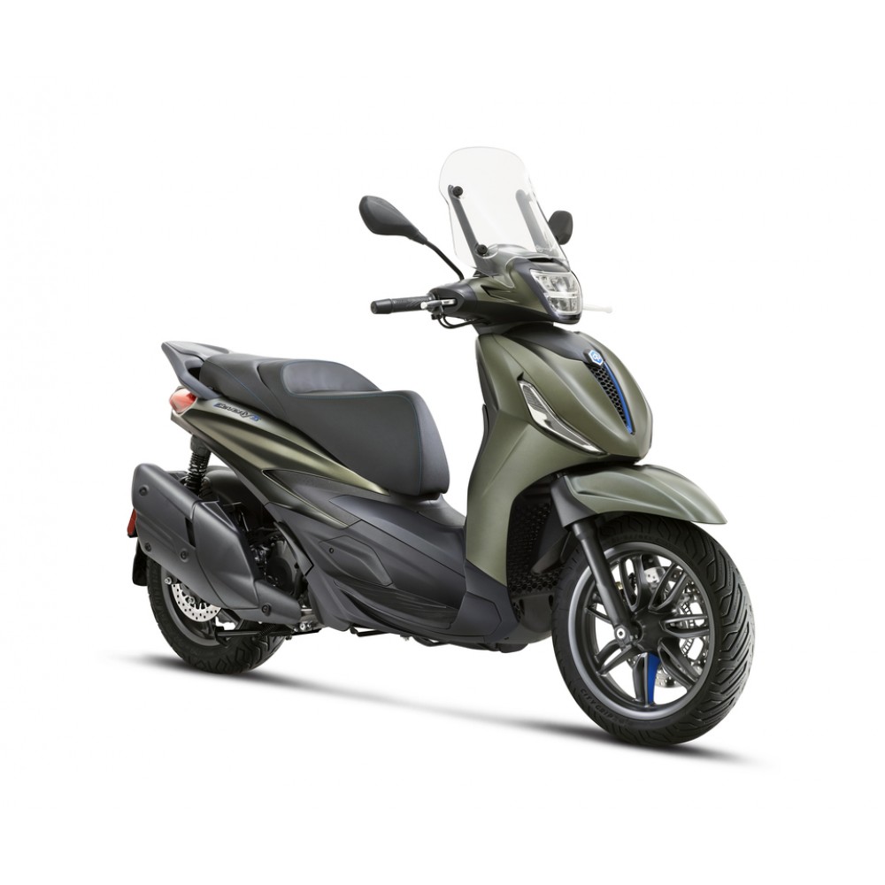 Piaggio Beverly S ostavlja upečatljiv utisak svojim sportskim duhom, izraženim mat grafitnim finišem na detaljima poput točkova, zadnje ručke i okvira instrument table i LED prednjeg svetla. Plavi akcenti na "S" logotipu, prednjem točku i karakterističnoj prednjoj kravati dodatno naglašavaju njegov odlučan karakter. Prepoznatljiv prednji kraj, sa V-oblikovanim vazdušnim otvorom i rešetkom u obliku saća, zajedno sa elegantnom zadnjom stranom i dvobojnim šavovima na sedištu, upotpunjuju dizajn—kreirajući savršen spoj sportskog skutera visokih točkova i moćnog GT-a.